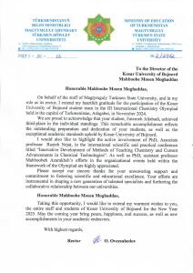 The President of Makhtumkuli University of Turkmenistan expressed his gratitude to the...